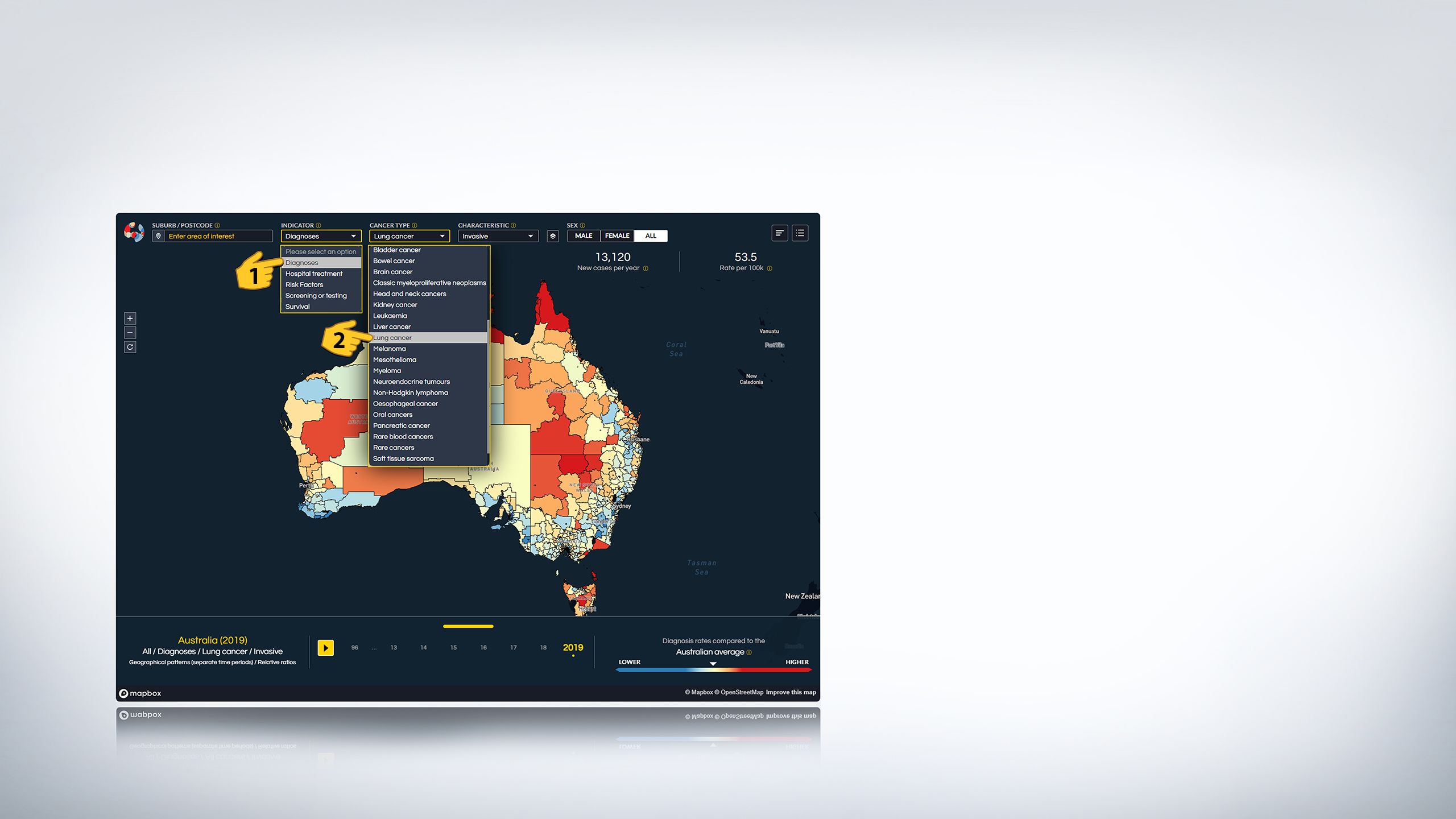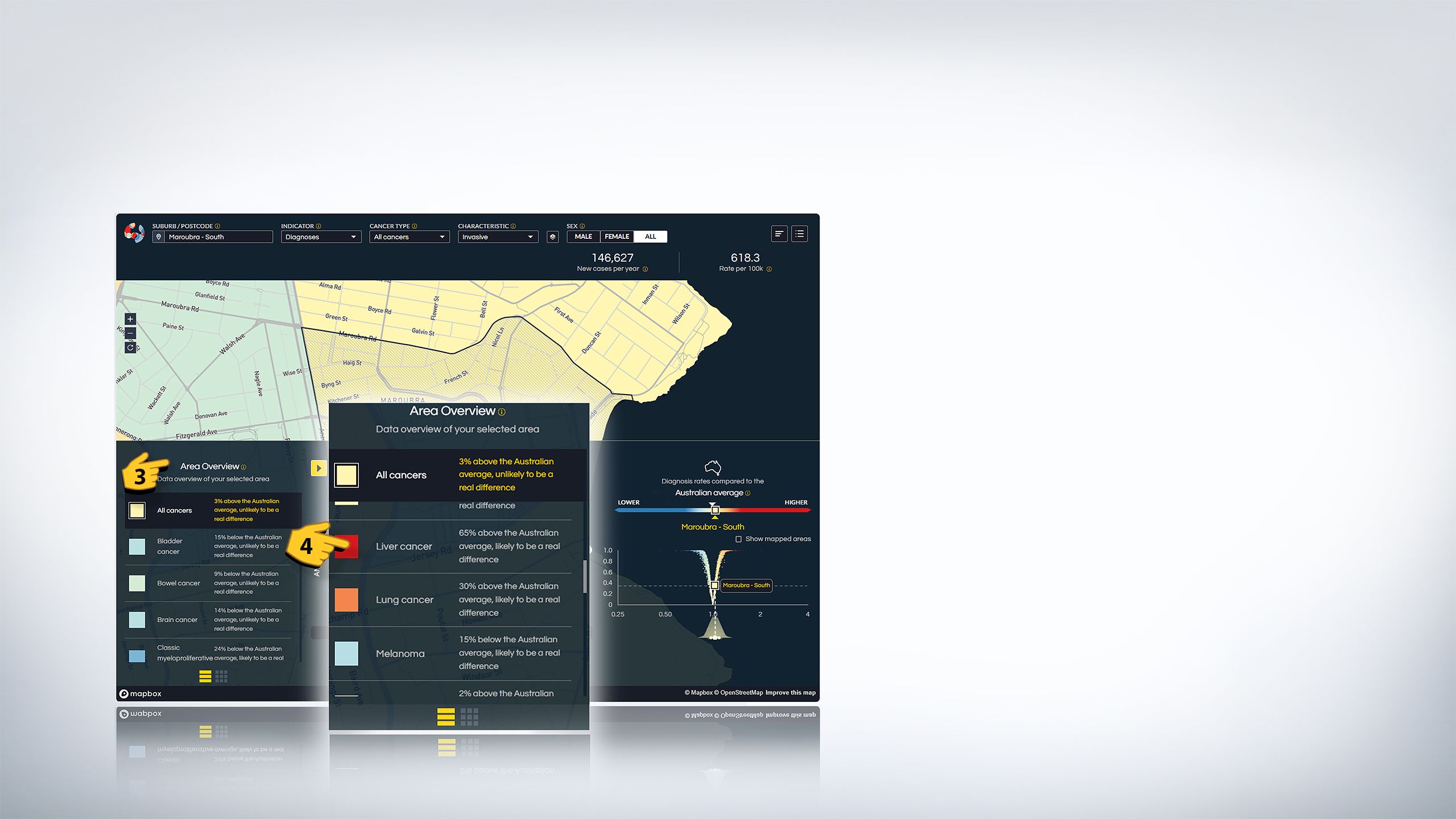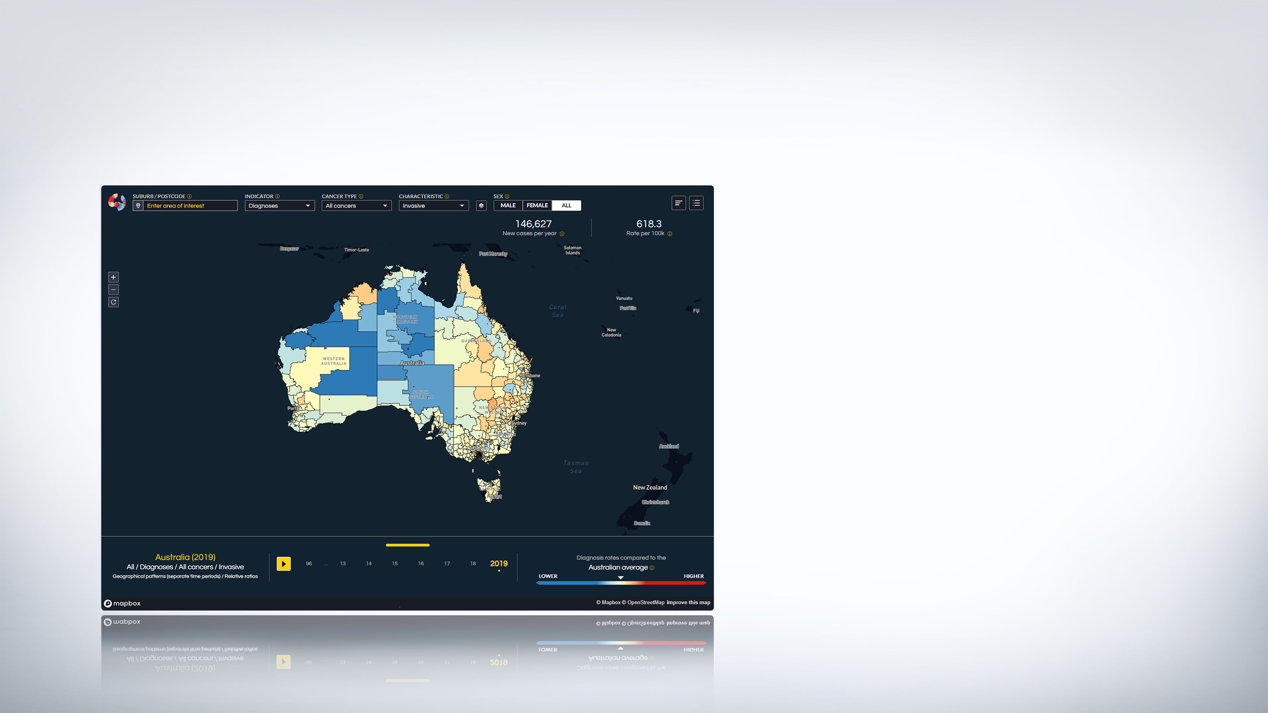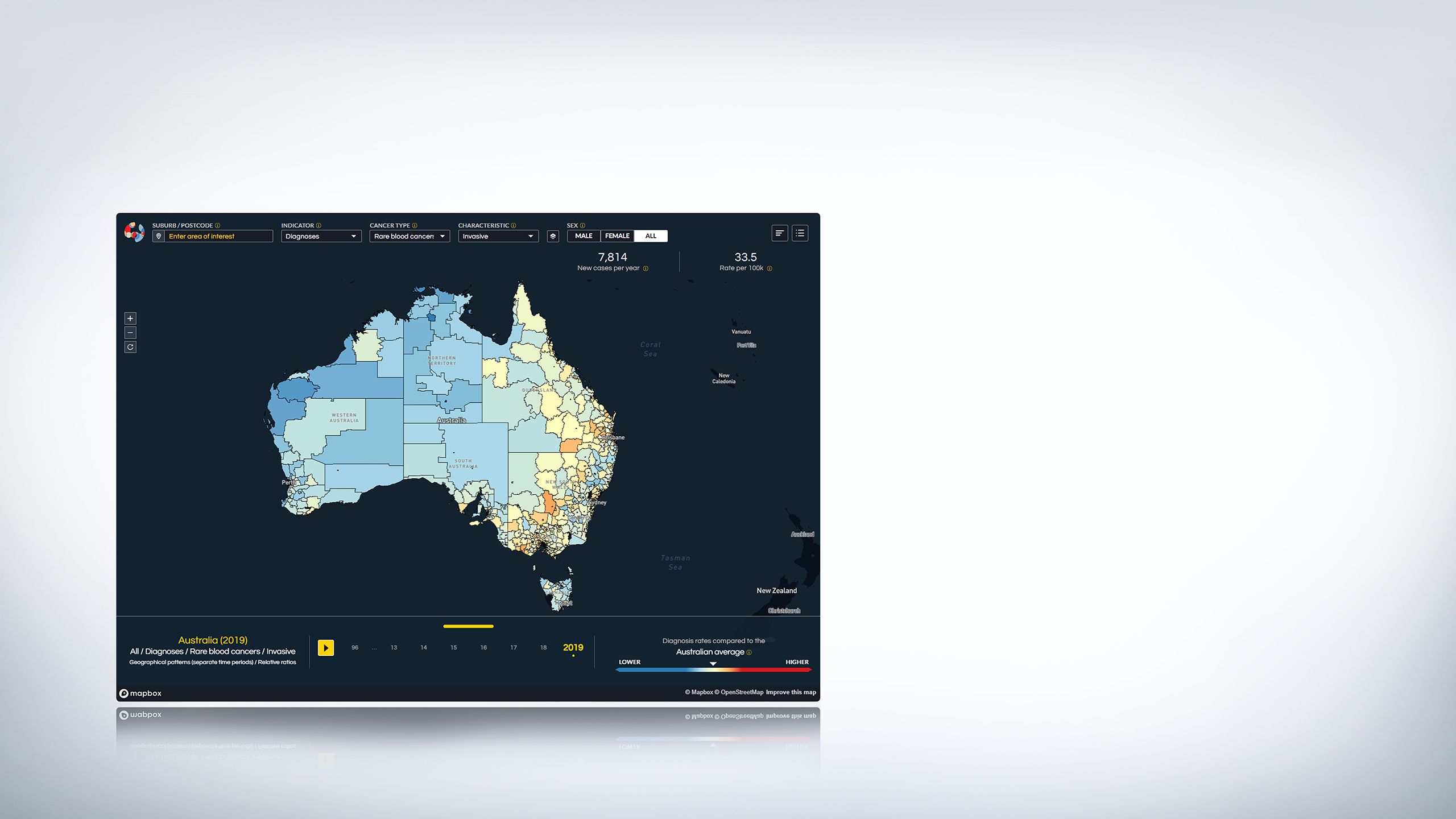 For the general public, the Atlas includes features that allow them to explore cancer-related statistics in their area and compare those corresponding statistics with other areas across Australia.