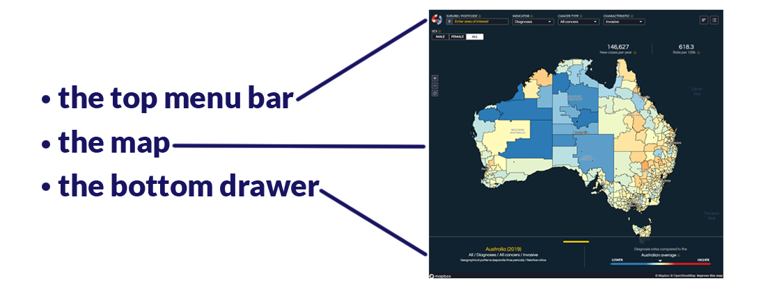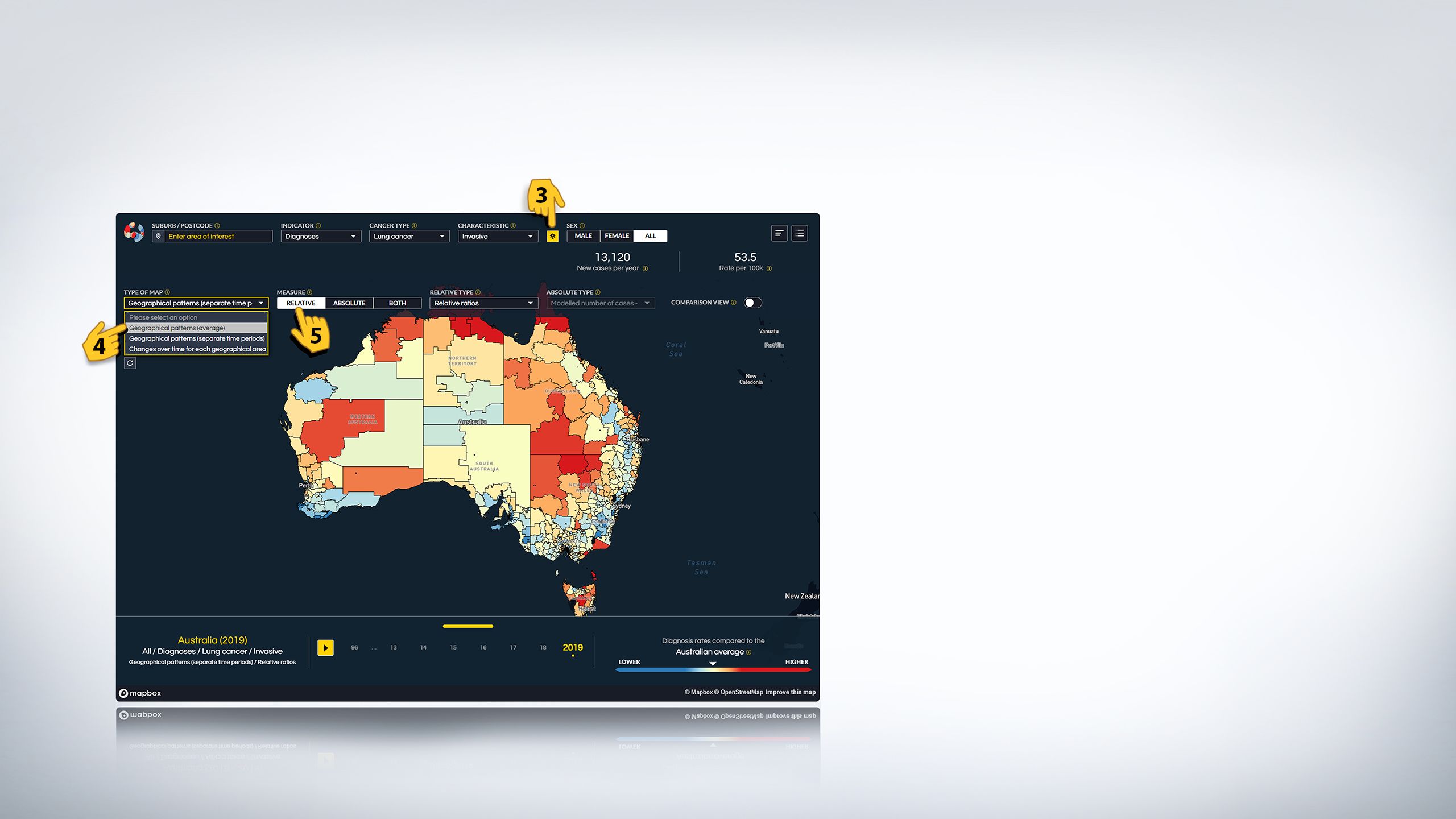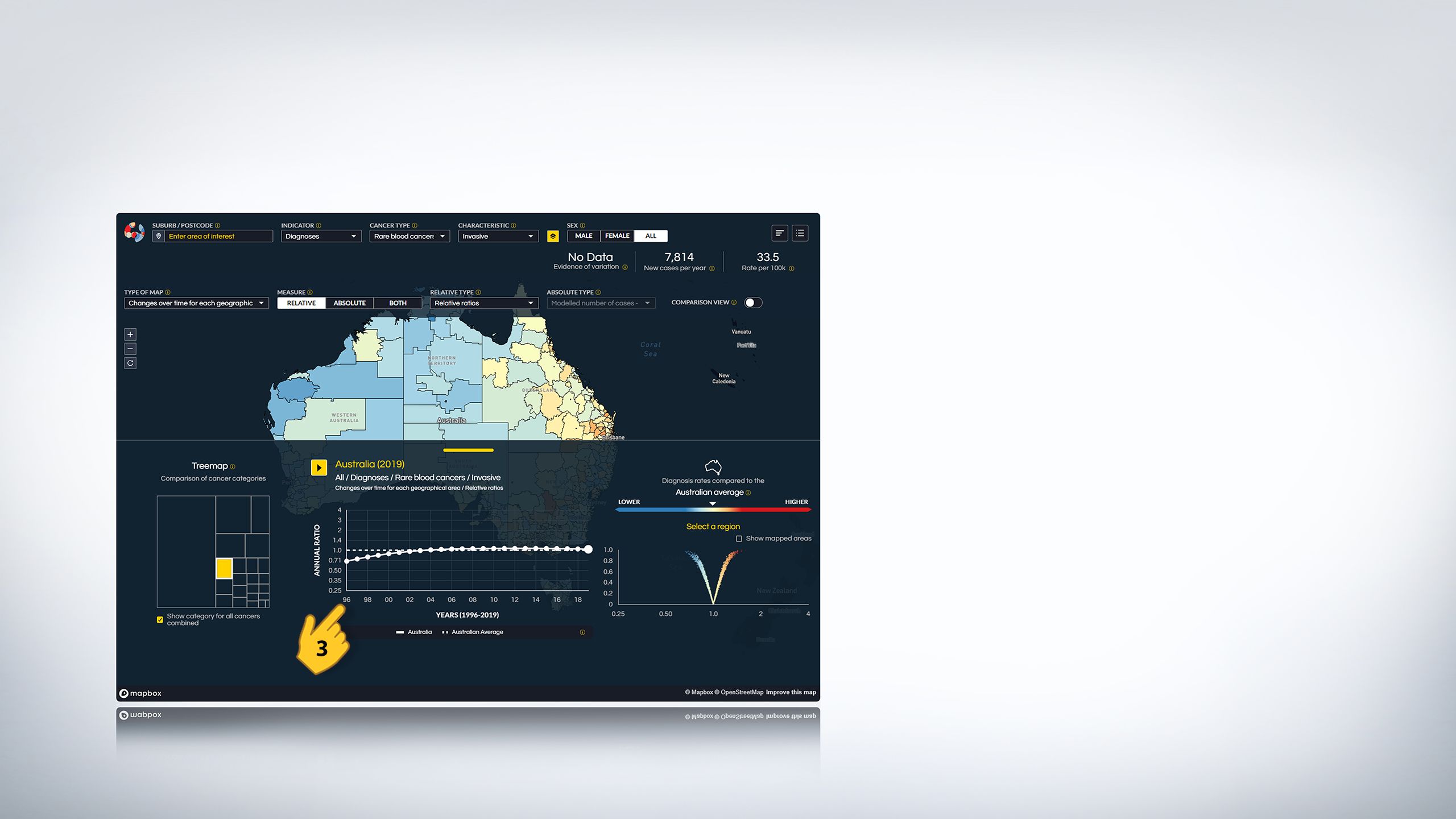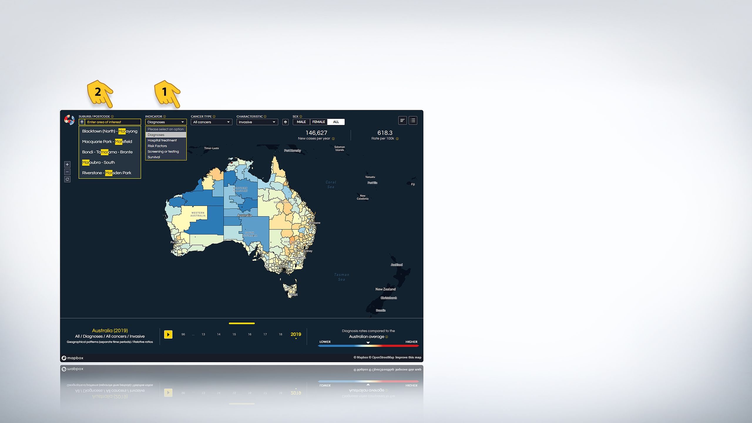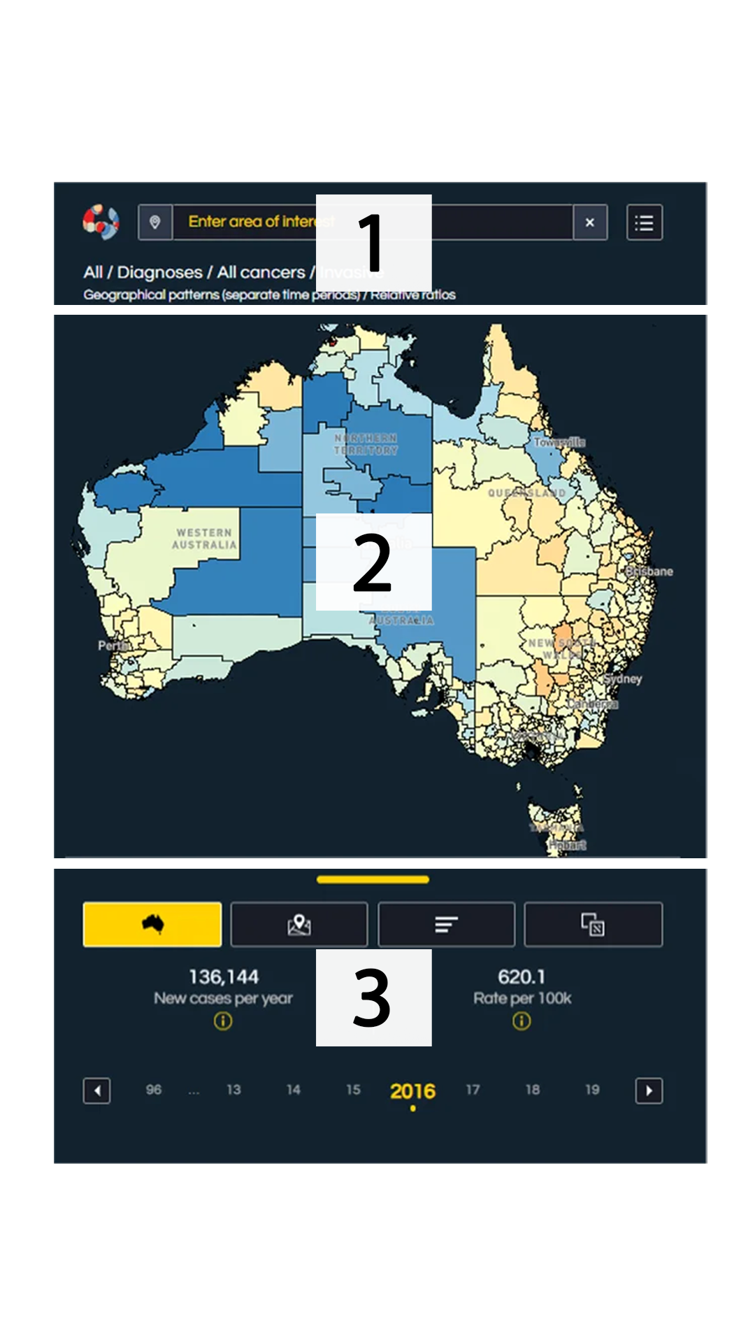 For the general public, the Atlas includes features that allow them to explore cancer-related statistics in their area and compare those corresponding statistics with other areas across Australia.