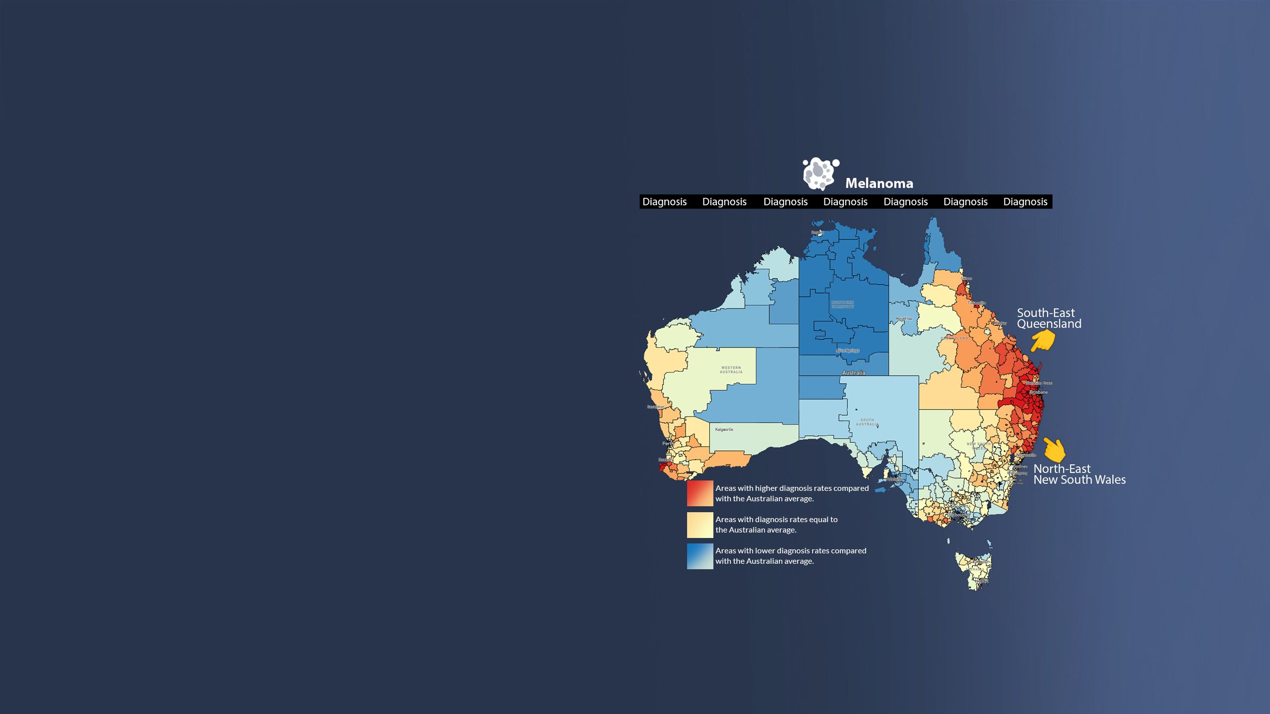 The Atlas shows that melanoma diagnosis rates are highest in South-East Queensland and North-East New South Wales, and these patterns have largely remained unchanged over time.
